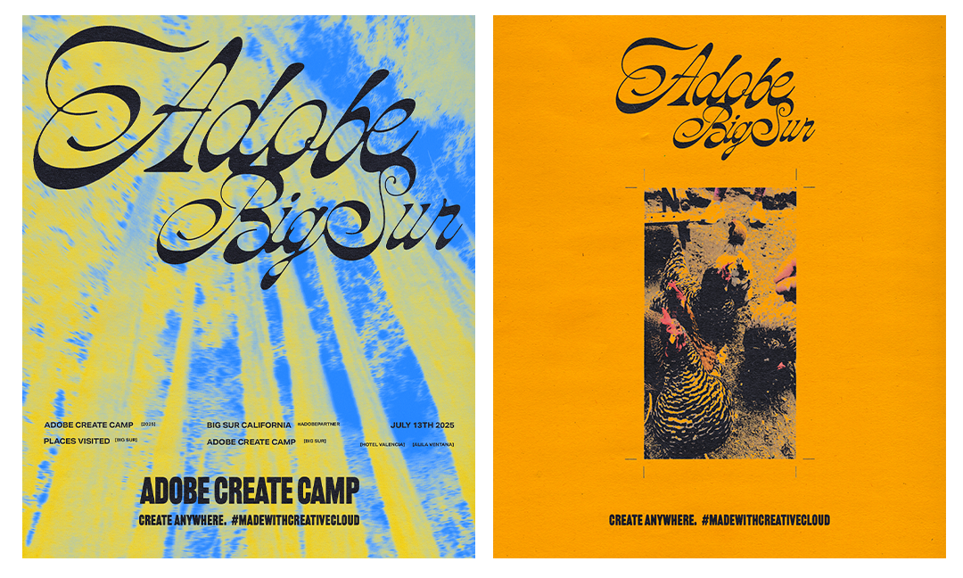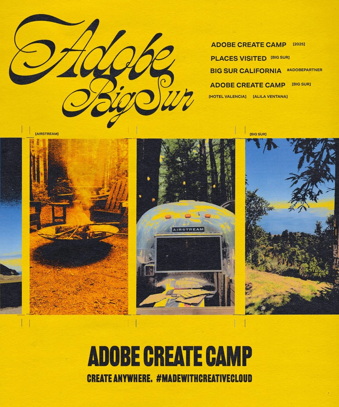 A collection of 10 poster templates created during Adobe’s Create Camp in Big Sur. Inspired by stepping outside the usual workflow and embracing the unexpected. These downloadable files are perfect for capturing creative moments. Use them to reflect your journey and share experiences that move you and your work forward.